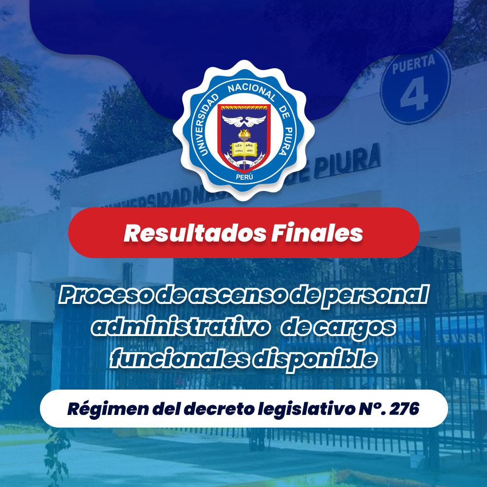 Se informa que, en cumplimiento de la Resolución de Consejo Universitario N.° 627-2025, emitida en Sesión Extraordinaria N.° 19-2025, se han publicado en el portal institucional los resultados finales del Proceso de Ascenso del Personal Administrativo bajo el régimen del Decreto Legislativo N.° 276. Esta publicación se realiza conforme a los lineamientos y cronograma aprobados para el Concurso Interno de Ascenso UNP 2025, garantizando transparencia, uniformidad y acceso oportuno a la información para toda la comunidad universitaria…